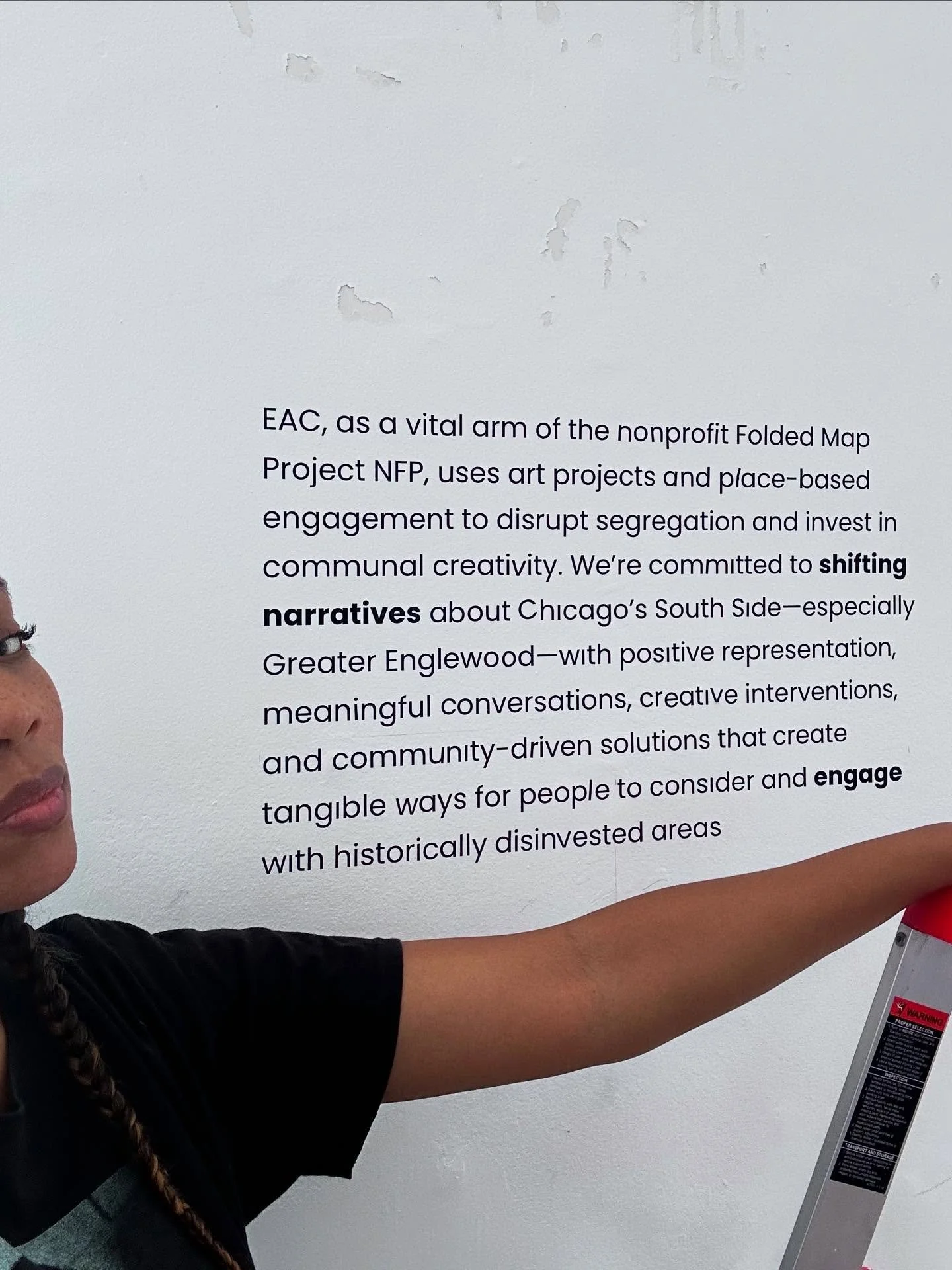Co-founder and Director of Activations & Engagement for Englewood Arts Collective, a dope lil’ group of professional artists from this south side Chicago neighborhood, working to reframe the narrative of what can be.